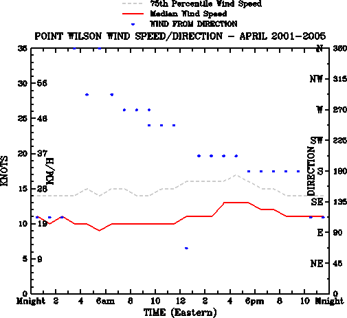 | POINT WILSON - April Median Wind Speed and Direction |